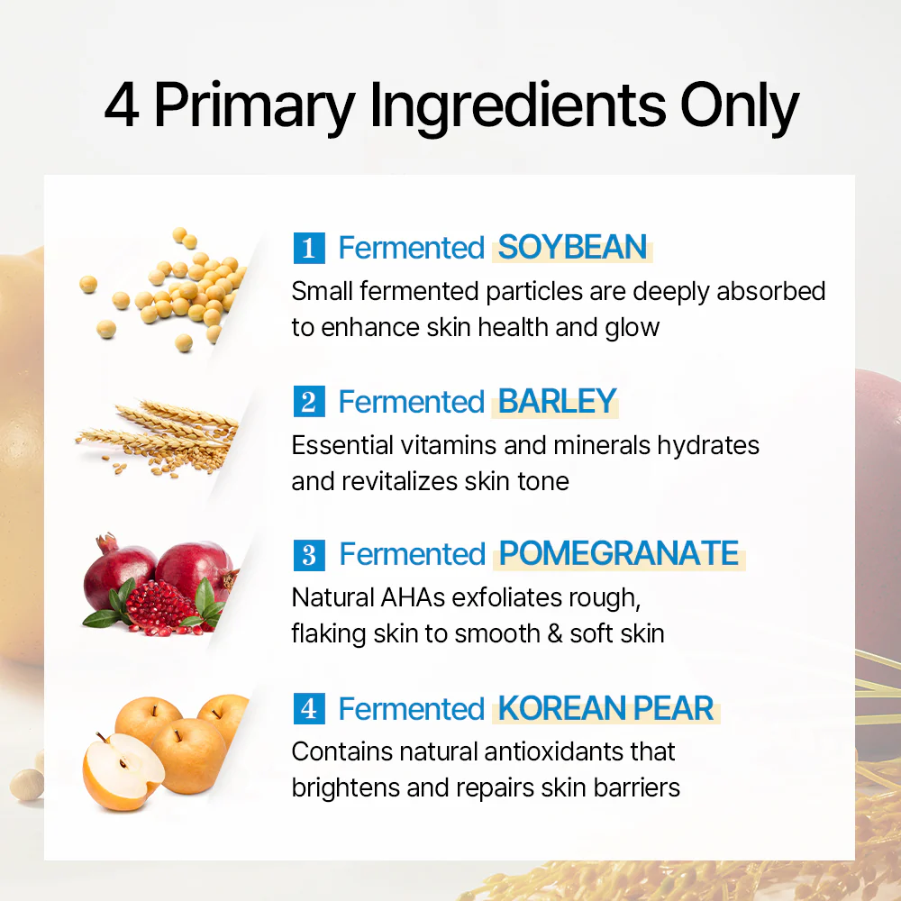 Les fèves de soja, l’orge et la poire fermentées sont de supers antioxydants pour renforcer et hydrater la peau.