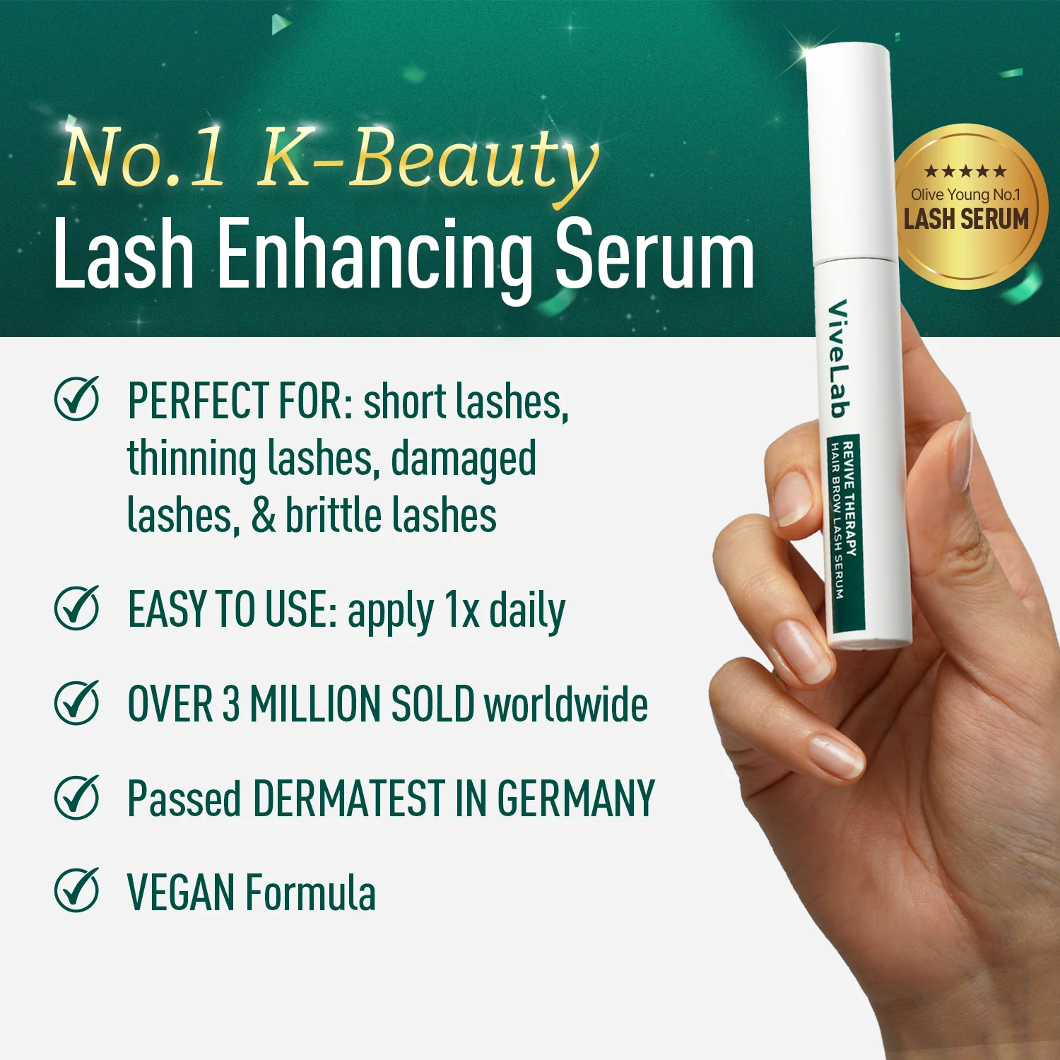 Testé dermatologiquement pour un soin doux et efficace des cils et des sourcils.
