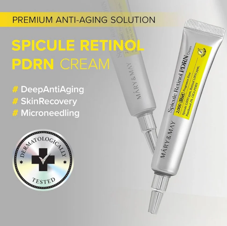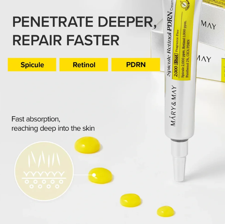 Une crème contenant des micro-spicules d’origine marine naturelle, 40 fois plus petites que les pores, du rétinol nano-liposomal et du panthénol apaisant qui améliore l’apparence des rides, des pores et du grain de peau.